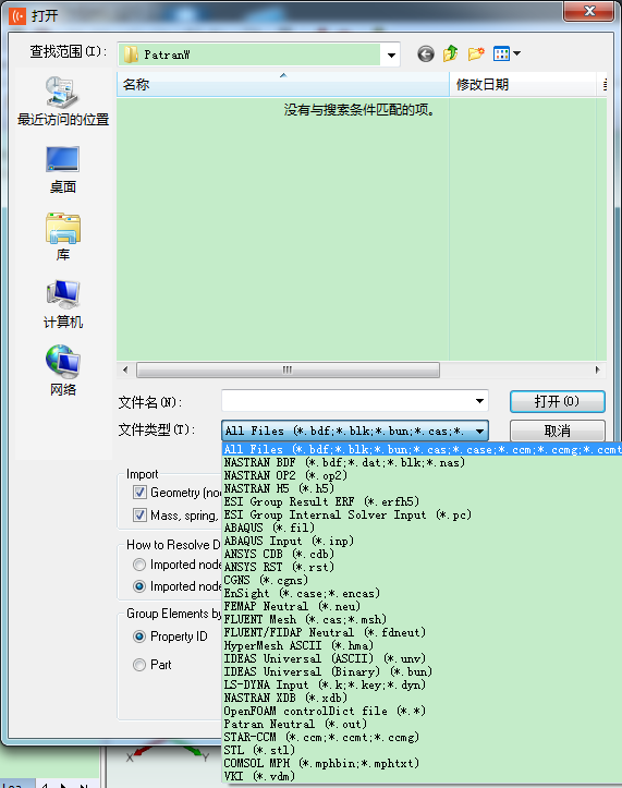 | Nastran | .bdf或.nas或.dat(必需)、.ses(可选) |