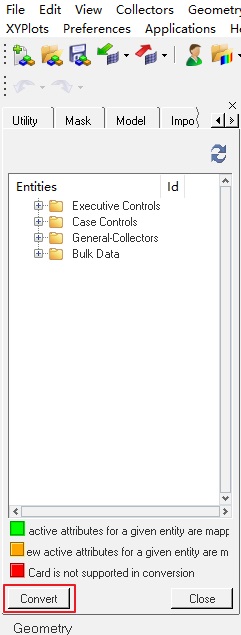 5、模型转换浏览器位于软件界面左侧,点击下方Convert按钮即可开始转换模型,将其转换为新项目所需求解器格式有限元模型。