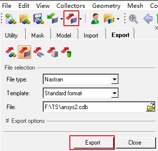 6、最后,点击菜单栏的“Export Solver Deck”按钮,然后在File输入框中设置转换后的Ansys的cdb文件,点击Export按钮开始导出模型文件。